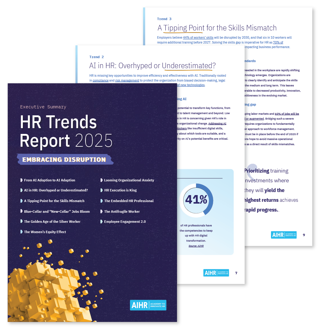 In the world of work, change is desperately needed. In this report, Founder of AIHR Erik van Vulpen and AIHR’s Chief HR Scientist Dieter Veldsman outline how HR can take action to elevate work in 2025.