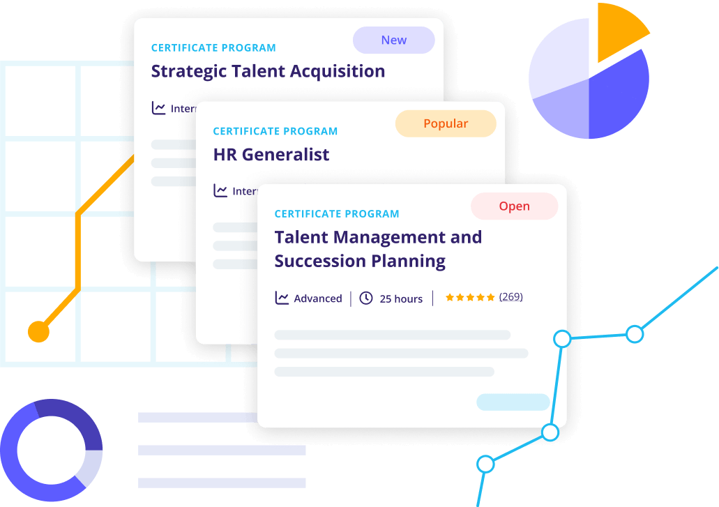 We help members develop the latest and most in-demand HR skills with 100% online and self-paced learning led by more than 50 world-class instructors. Members get access to what fits their goals, from accredited single certifications to unlimited learning.