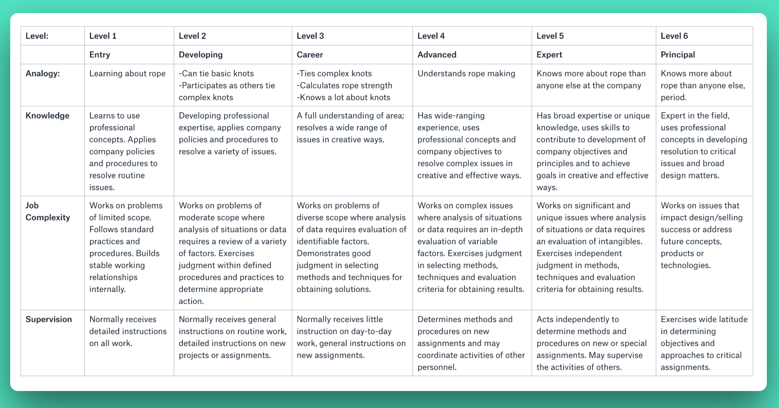 - Level expectations: This defines the roles, functions, and impact expectations at different levels within the organization.