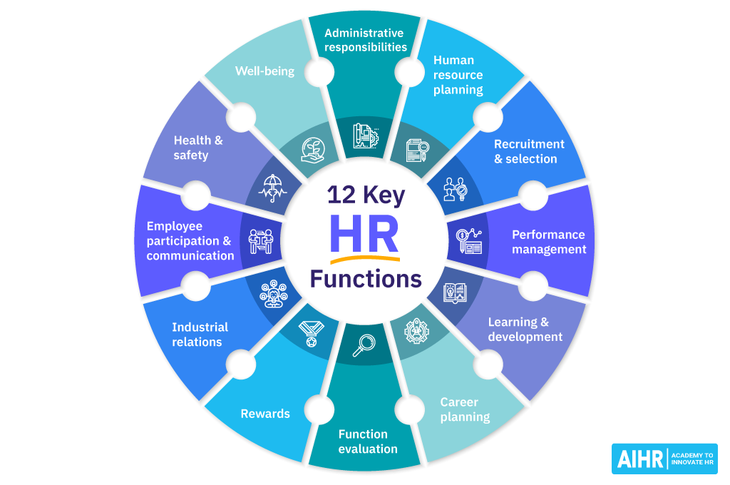 HR has many important functions in the organization. These include recruitment, performance management, learning and development, and many more. In total, there are 12 key functions of Human Resources Management.