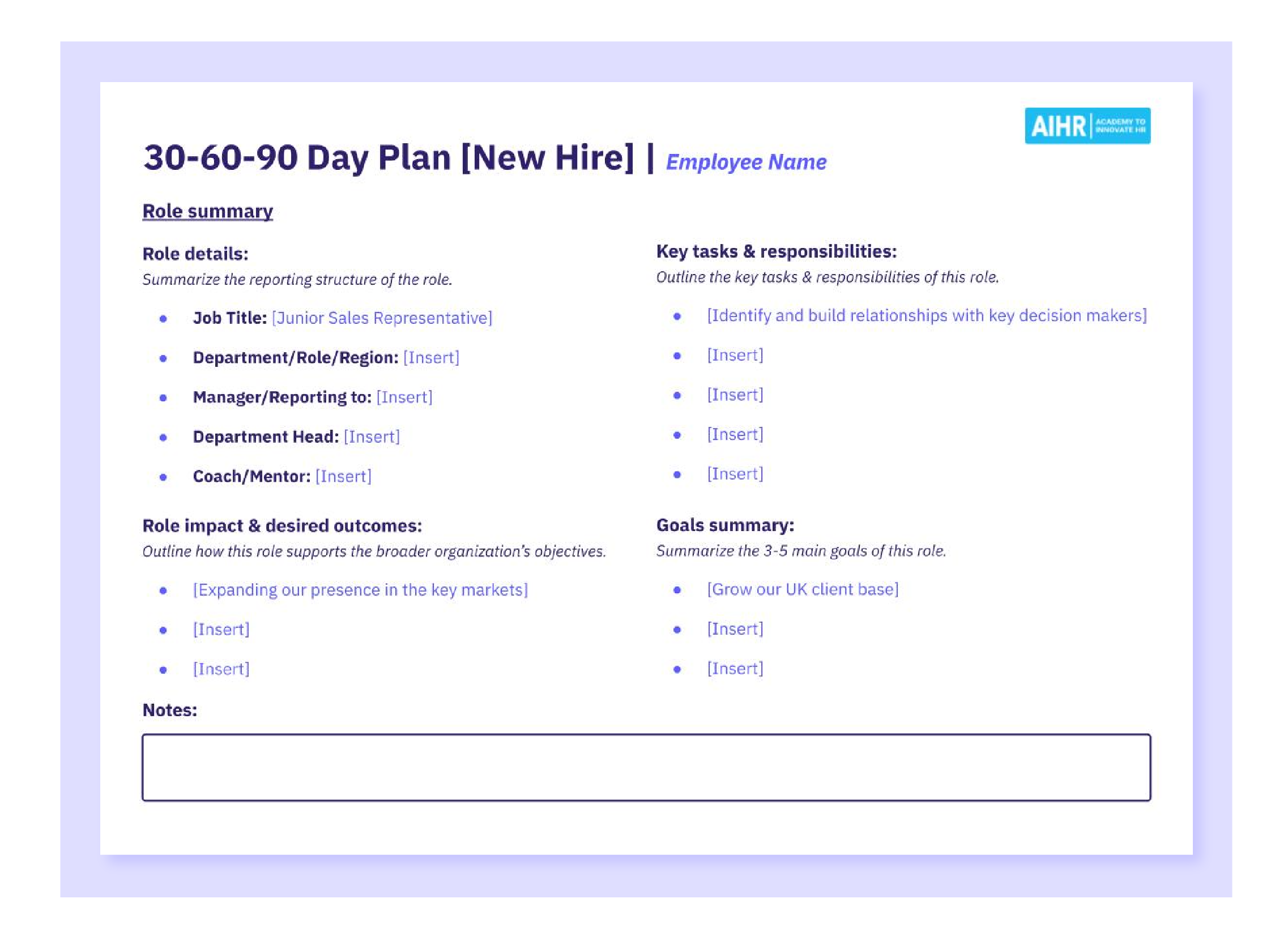 This plan not only gives clarity to the new employee about what’s expected of them but also forces the direct manager to clearly specify their expectations.