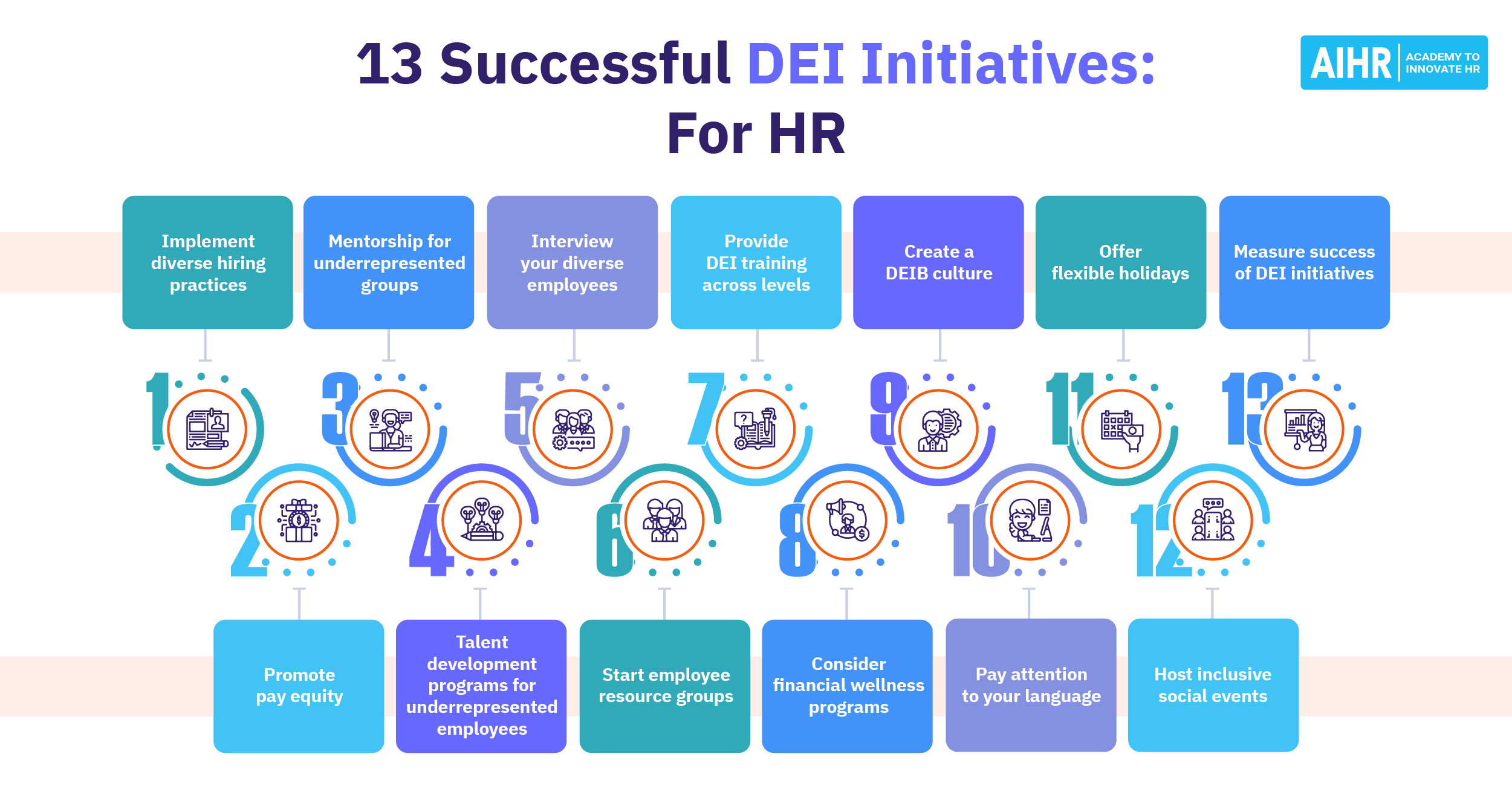 - Promote DEIB: Foster inclusivity and a diverse workplace culture
