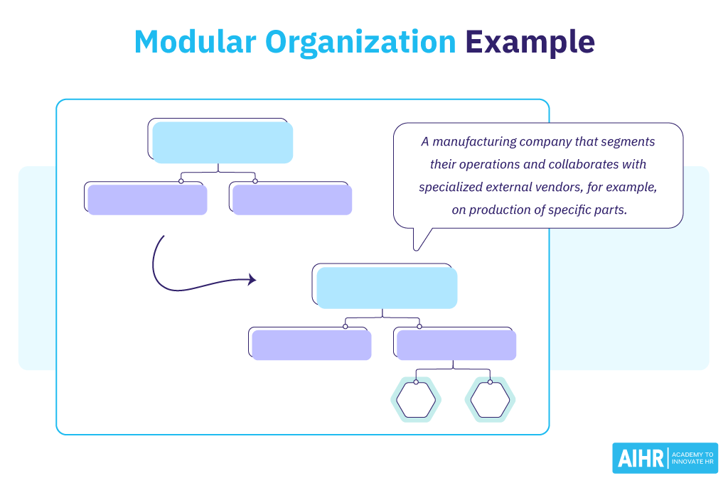 A software company may adopt a modular organization by outsourcing customer support, payroll, or marketing to specialized firms while concentrating on product development and innovation. The outsourced activities are considered modules of the organization’s structure, with well-defined roles and standardized processes.