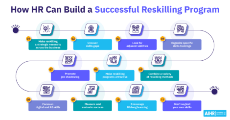 - Bridging skills gaps: Organizations must keep pace with technological advancements and frequent shifts in business concepts. This means equipping employees to face new challenges. Reskilling and upskilling individuals for specialized technical roles and developing their soft skills prepares the workforce to adapt, foster innovation, and meet the organization’s future labor needs.