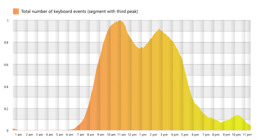 When you’re working from home and living in Zoom and Teams meetings, it’s natural for the work/home life lines to begin to blur and for some people to hit their keyboards later in the evening. This allows for less interruption and more concentrated bursts of focused work, as illustrated by Microsoft’s research – with a 30% evening spike in keyboard activity.