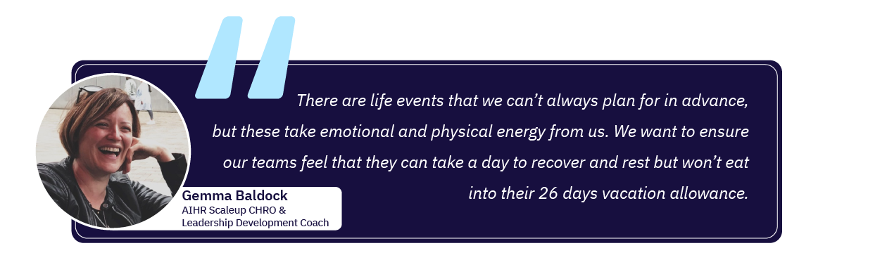 Recently, AIHR has introduced mental health days. These are days that employees can take off work to pause, regroup, alleviate stress, and head off burnout before it’s too late.