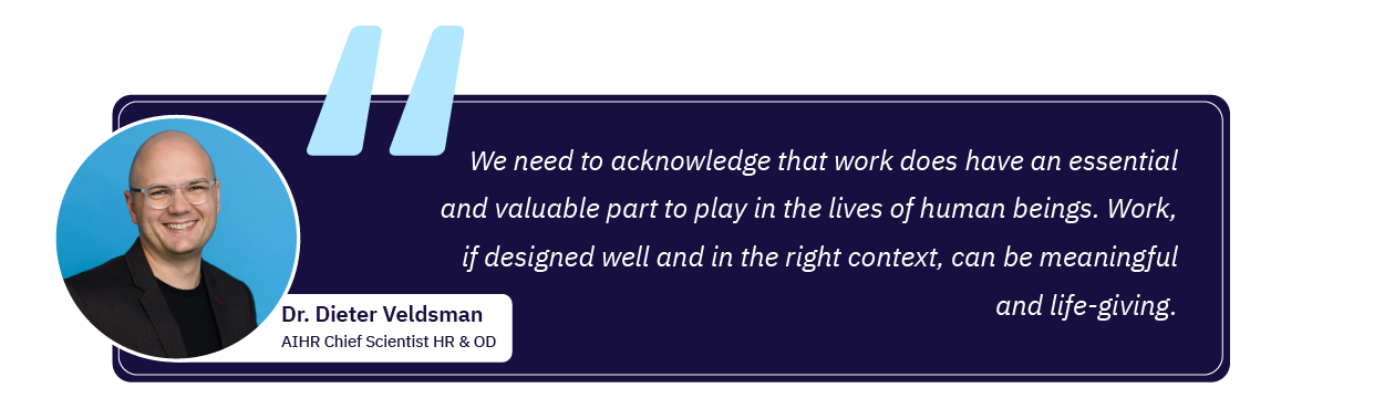 Dr. Dieter Veldsman, Chief Scientist HR and OD, AIHR“As HR, we need to break the paradigm that a “good worker” is someone that stays late, is there first, works over weekends, and never says no to any demand from the organization.