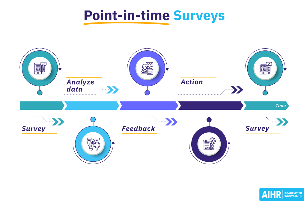 In this approach, shorter pulse surveys are used, with immediate actions being taken based on the feedback. It works well in controlled environments, yet it can be challenging to keep the cadence of measure, action, and re-measure at scale.