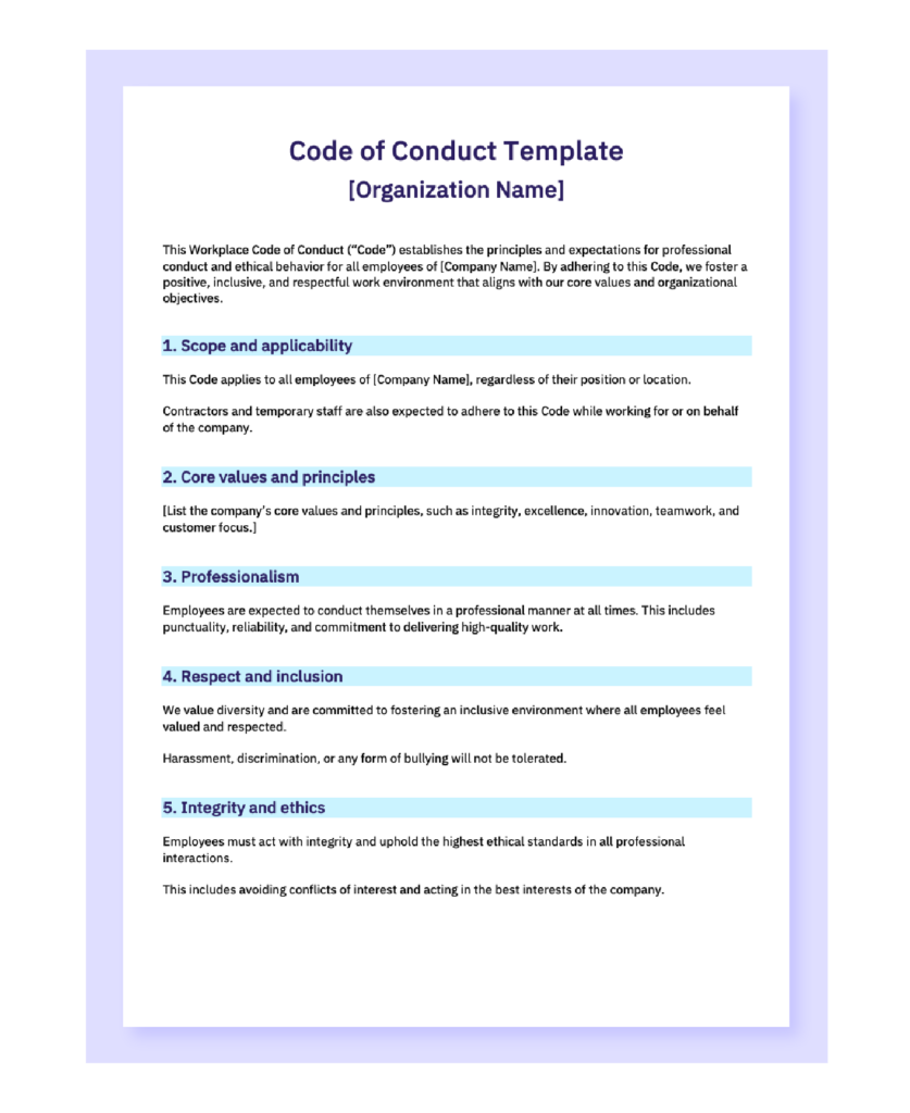 To help you develop your organization’s code of conduct, we’ve provided a template that can serve as a foundation for customizing your own.