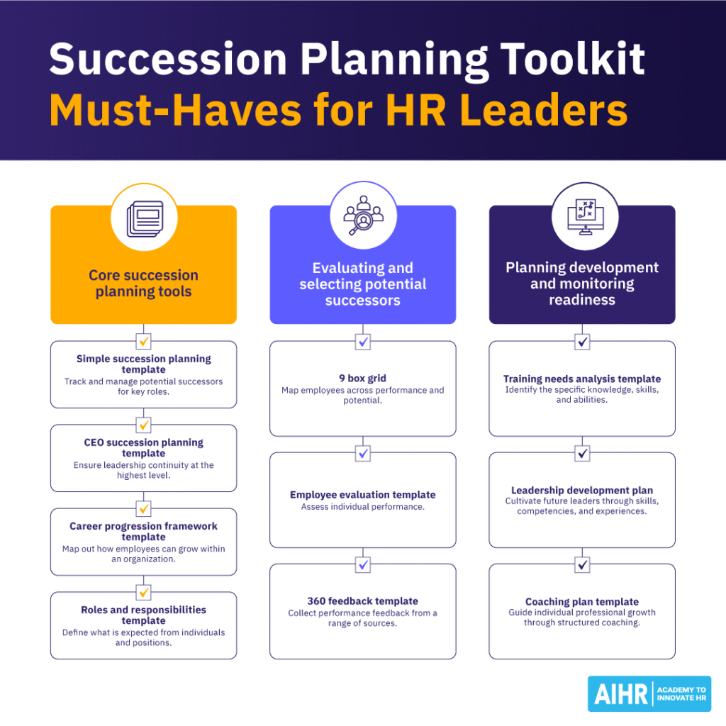 Here’s a range of succession planning tools and templates that you can mix, match, and adapt depending on your organization’s size, maturity, and strategic priorities.