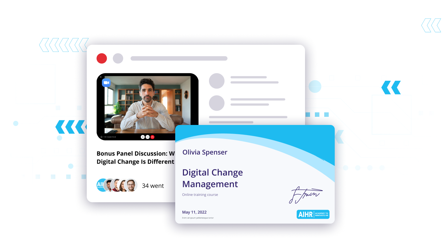 Whether you’re just getting started with digital HR or are looking to develop advanced digital skills, AIHR can help you hit your development goals. In addition to on-demand online digital HR courses, we also offer an extensive and expanding resource library, full of templates and guides to help you get off to a flying start.