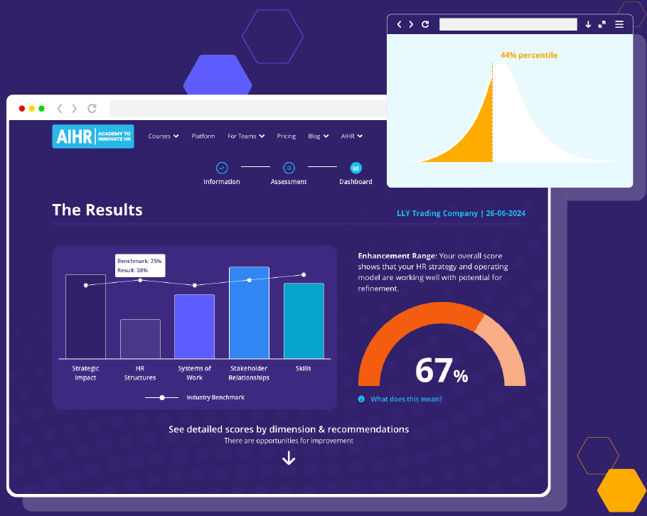 You’ll receive a detailed report of your results based on five focus areas: Strategic Impact, HR Structure, Systems of Work, Stakeholder Relations, and Skills. This report helps you understand how well your HR practices support the broader business strategy and contribute to organizational success.
