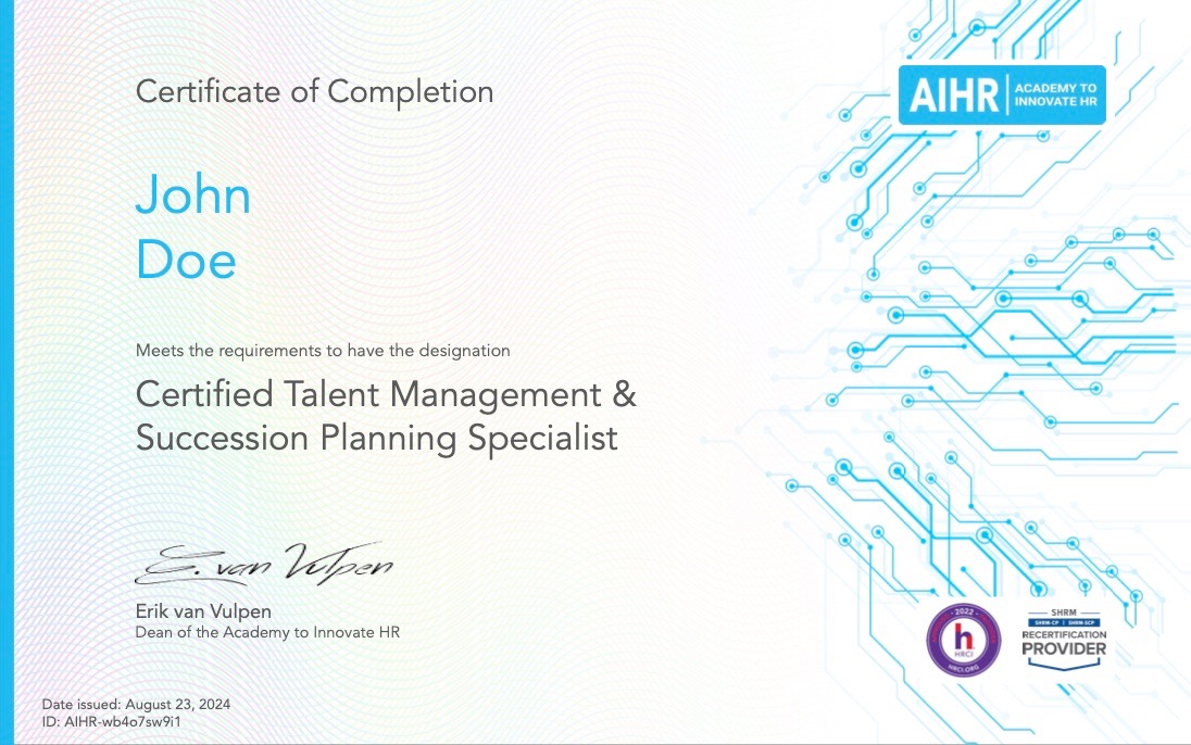 AIHR offers a Strategic Talent Acquisition Certificate Program that dives deeper into Talent Acquisition. This can be purchased separately, or you can get access to both programs and more with the Full Academy Access License.