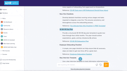 Whether you’re new to the field or are a seasoned HR professional, the AIHR Copilot provides valuable support that can help you work faster, smarter, and better. Let’s explore a couple of different use cases.