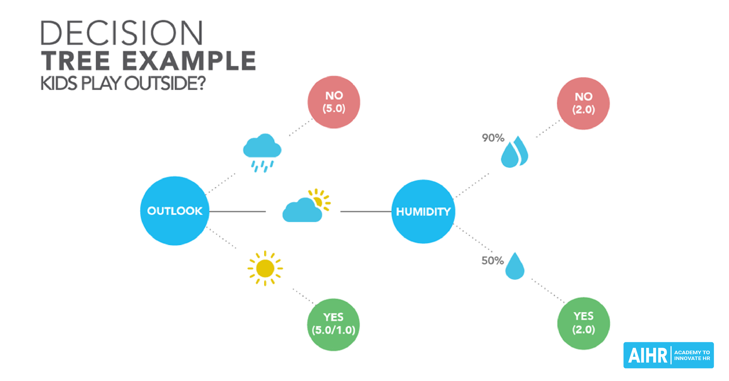 In other words: the weather forecast and humidity can be used to predict whether kids will play on the playground outside accurately. Of course, in an organization, you’re not interested in predicting these specific outcomes. Rather, you will use HR metrics to predict business outcomes.